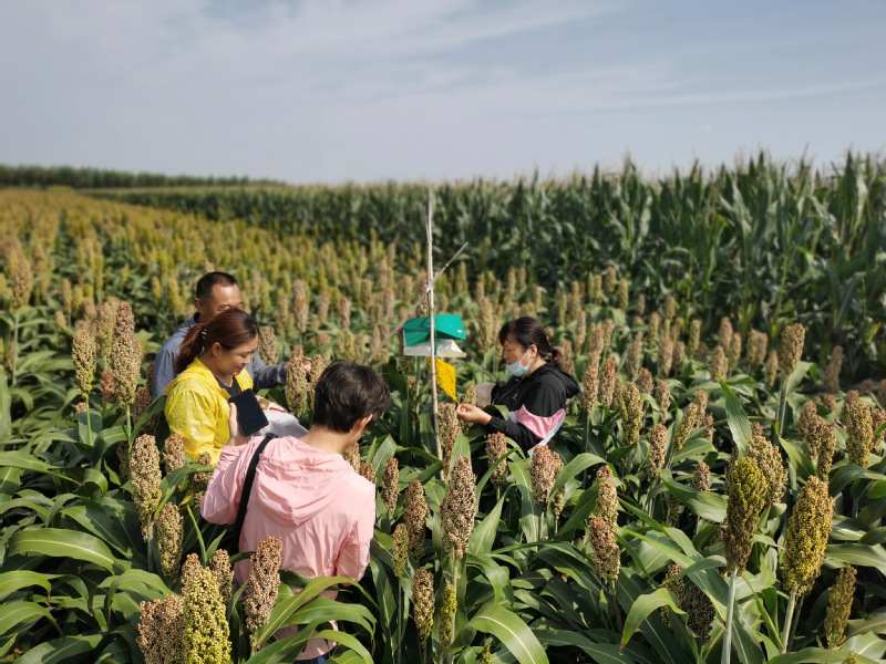 8月19日,买球赛的app官网院长郭永霞带领下,植保和土壤肥料专家台莲梅、张有利、张海燕等一行4人来到肇源农业科技园区,在园区高中奎主任对台莲梅教授负责的”高粮病虫害绿色防控技术研究”项目开展情况进行了交流,专家在基地对高粱田间病虫害发生情况进行调查并在现场进行分析,同时开展病虫害防治技术指导。