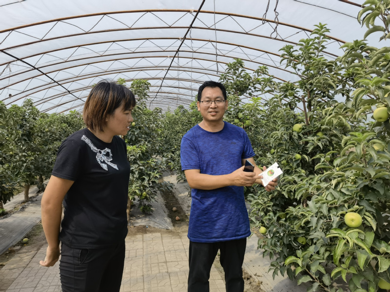 在古恰镇百果园庄园,张有利老师负责的“百果园寒地果园试验示范基地建设及果树病虫害综合防控配套技术创新实践和应用推广”项目的肇源县百果园基地,对以螨治螨红蜘蛛防控、木醋液复合配方灭虫等技术进行了走访调查。