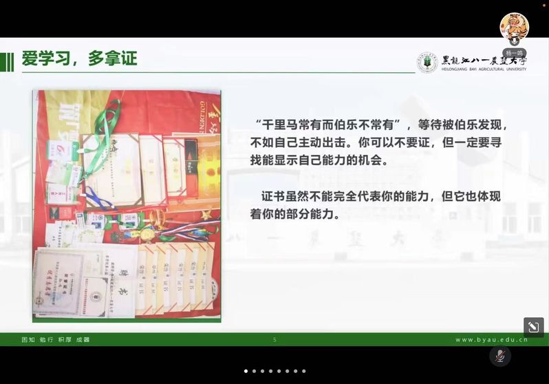 为构建“本硕博”学生管理联动机制,充分发挥朋辈影响力,促进大学生提升思想素质、深刻专业认知、培养目标理想、强化优良学风,农学院于4月13日开展“朋辈壮苗”-农学院研本沙龙系列活动。活动邀请买球赛的app官网分团委副书记、2021级作物学研究生杨一鸣同学为本科学生做题为“谈谈我逝去的四年本科时光”的专题报告,学院党委副书记王洋、分团委书记丁雪冬、辅导员尹志伟及200余名在校大学生线上参加。