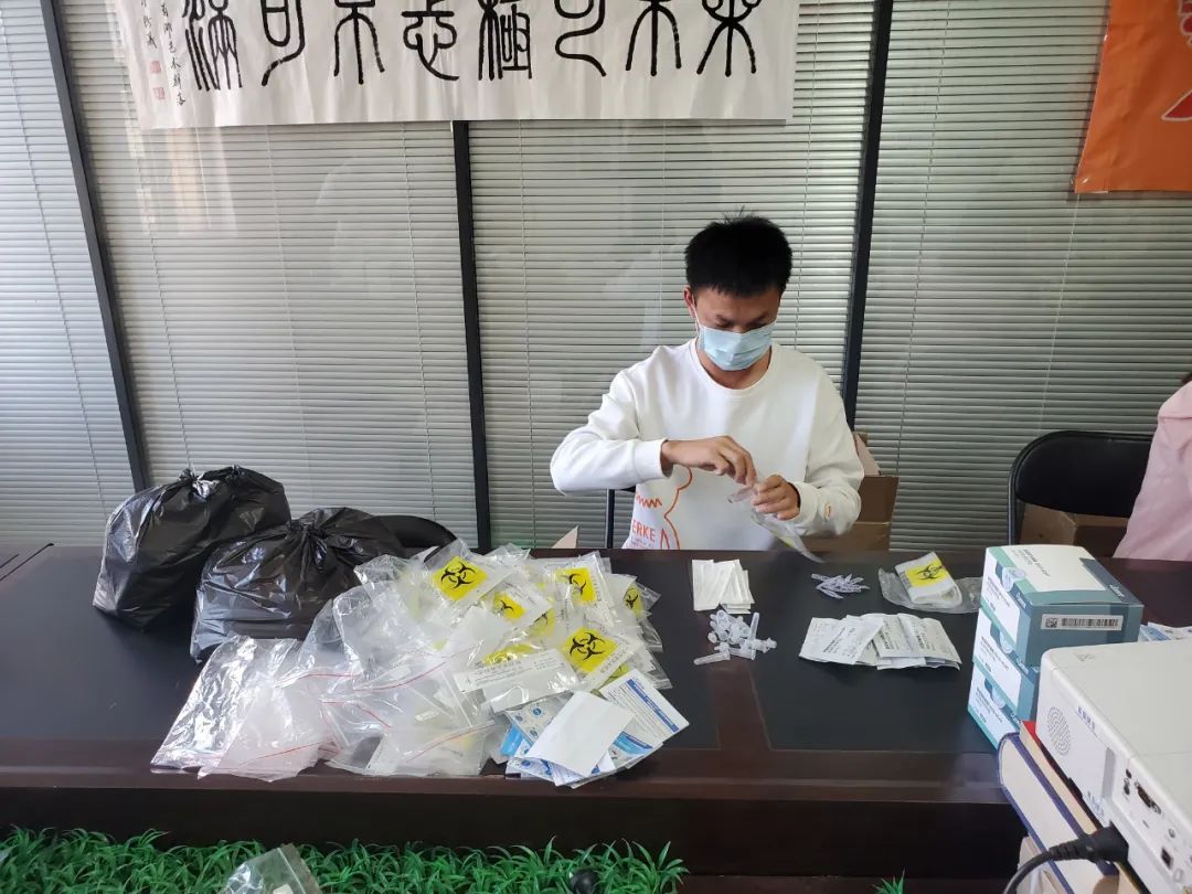 苗兴芬老师在社区临时党支部参与核酸检测秩序维护、分装试剂盒和分发政府配发蔬菜包的工作,她用行动诠释了对社会的责任,带动了更多的人参与到这场伟大的抗疫活动中。她说:守护家园有我并不在我。
