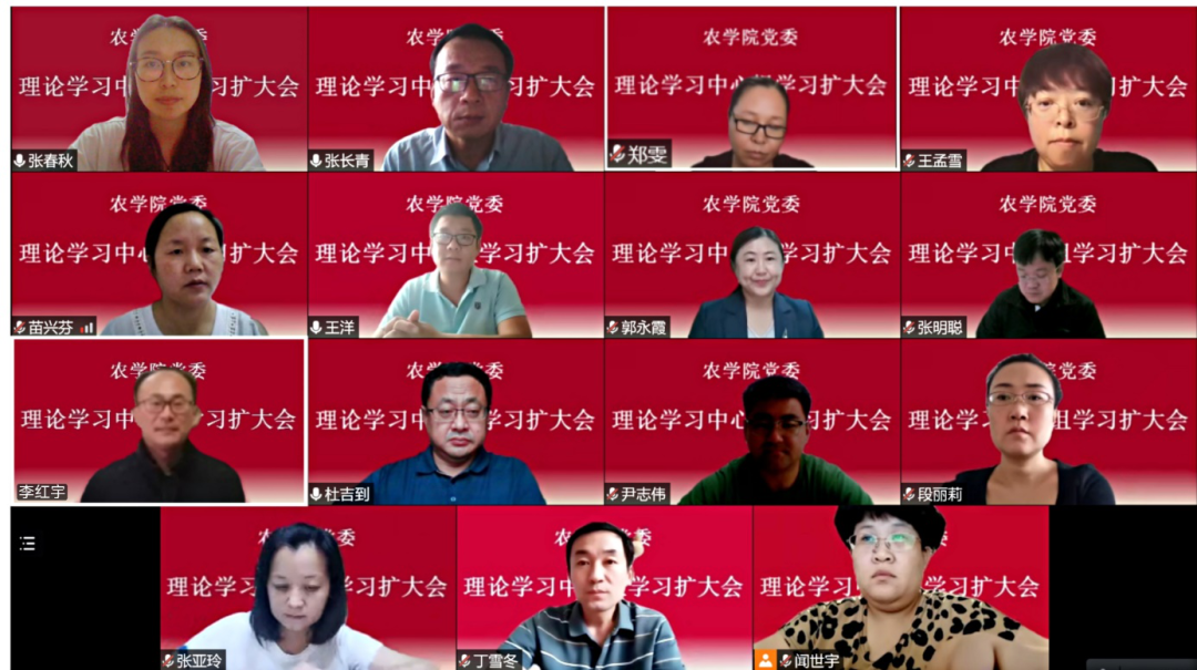 96日,农学院召开党委理论学习中心组线上学习扩大会,学院党委书记张长青领学省委宣传部印发的《习近平谈治国理政》第四卷宣讲纲要;院长郭永霞、副书记王洋就“首届黑龙江省高校院(系)党组织书记论坛”上省内两所高校两个学院分享的党建工作先进经验谈心得体会。专职组织员、各支部书记一同参加学习。