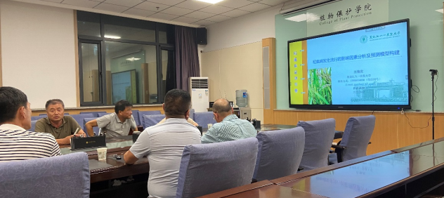 左豫虎教授在会上作“稻瘟病发生流行的影响因素分析及预测模型构建”学术报告,左豫虎教授扎根黑龙江垦区实际,调研了三十多年来垦区稻瘟病病害资料和气象资料,创新性地提出了多个与稻瘟病发生流行相关的气象要素,并构建了水稻叶瘟发生、流行预测模型和穗颈瘟发生模型,模型预测结果与稻瘟病实际发生拟合度高、预测结果好,与会人员充分肯定了左豫虎教授的研究成果,认为该成果具有推广应用价值。