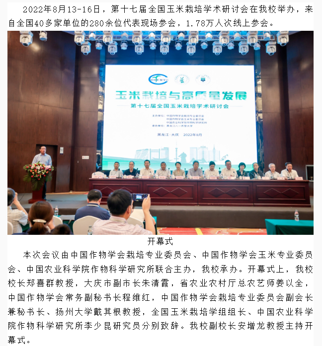 第十七届全国玉米栽培学术研讨会在买球赛的app官网举办