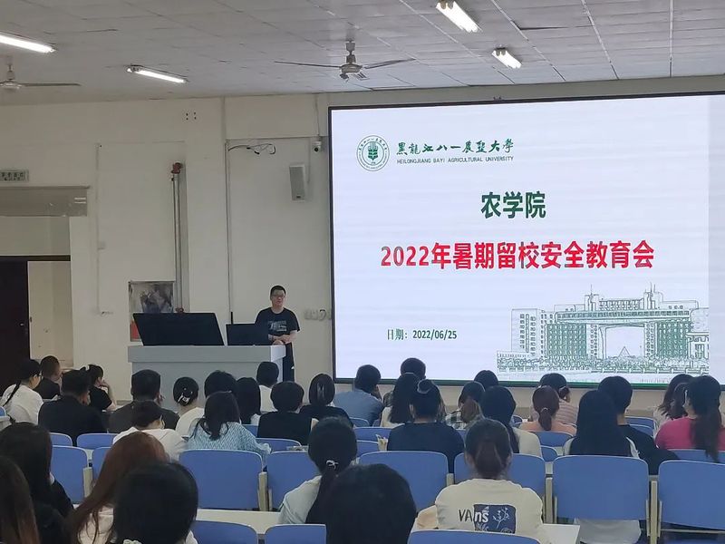 2022年6月25日 上午,农学院2022年暑期留校人员安全教育会在主楼124举办。农学院党委副书记王洋,研究生辅导员白巍及留校的170名学生参加会议。