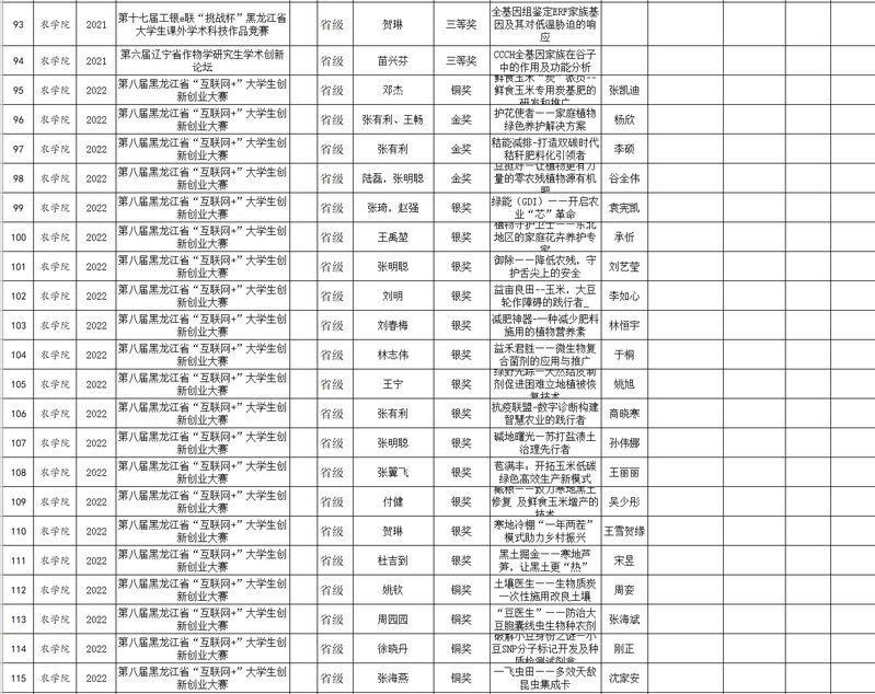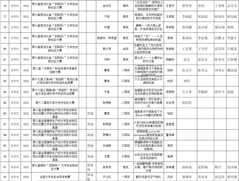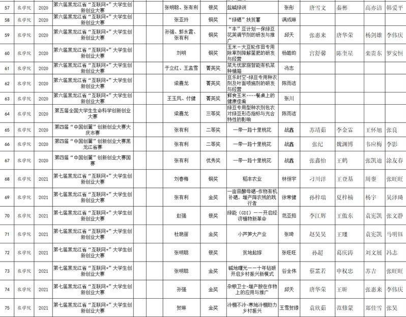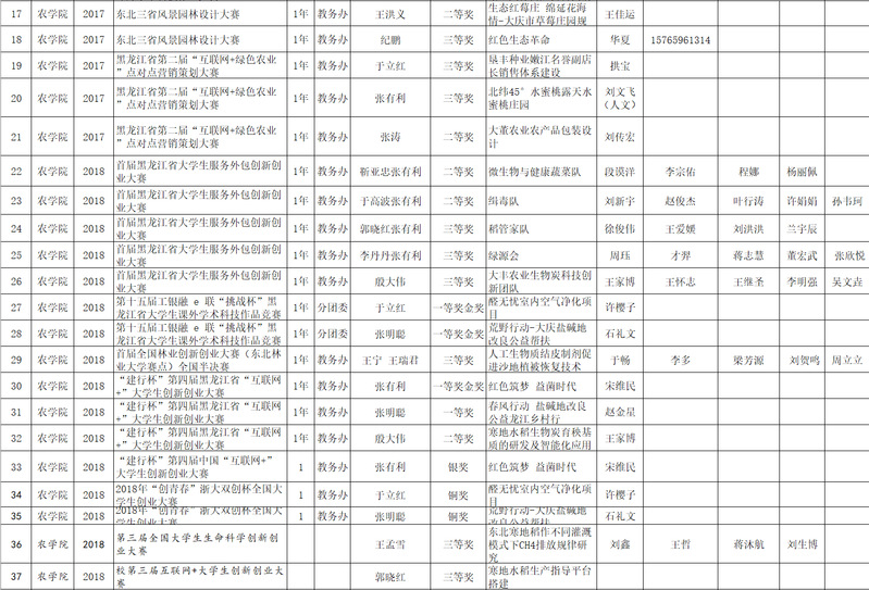 农学院组织参加创新创业及学科类竞赛获奖情况统计表