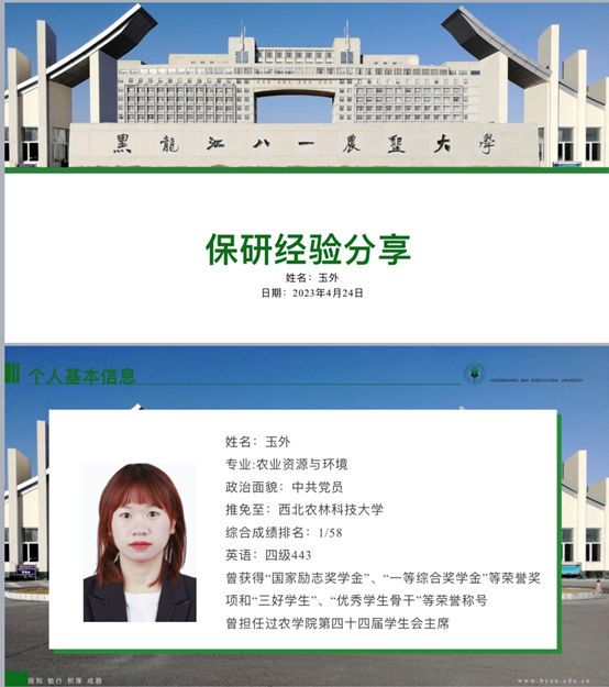 玉外,农学院第44届学生会执行主席,目前已推免至西北农林科技大学。