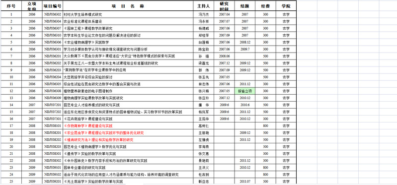 农学院2006至2011年校级课题情况总结