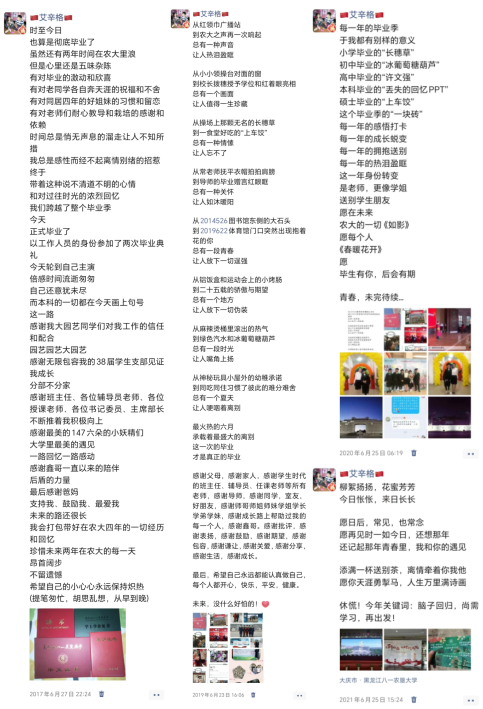 又逢毕业季,每一年于我都有别样的意义,成长蜕变,拥抱送别,热泪盈眶……毕业季的故事有很多,每一年我都会认真地发表感悟打卡,这一年,我带着满心的暖暖和不舍,迎来了我的“2019”们的毕业时刻。6月14日晚,一段暖心的感谢和文字分享,让我想起了我的四年大学时光,也终在今天,打开了那封陈旧的又让我记忆犹新的回忆录。下面,请大家跟着我和我的学生一起,听听我们的故事,再去翻开独属于我们每个人的农大记忆。
