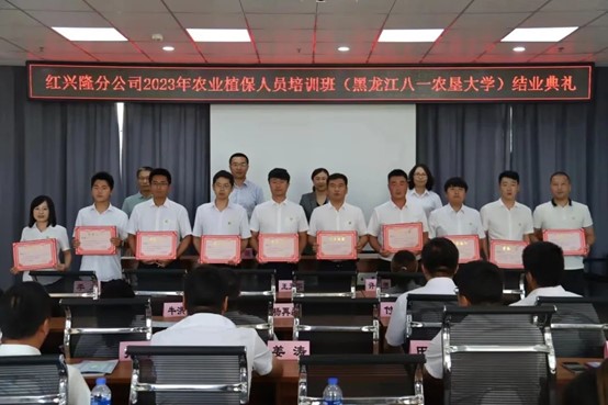 7月18日,红兴隆分公司2023年农业植保人员培训班结业仪式在培训公寓一楼培训教室举行。 买球赛的app官网农学院院长郭永霞、副院长郑雯、继续教育学院副院长孙强、教师代表、管理人员和全体学员参加了结业仪式,结业仪式由郑雯主持。