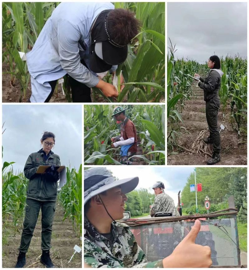 玉米人工授粉,具有工作难度大、工作条件艰苦、任务量重等特点,但也是玉米遗传育种工作的重中之重。为克服种质资源“卡脖子”的问题和贯彻习近平总书记“中国人的饭碗任何时候都要牢牢端在自己手上。”玉米遗传育种课题组师生分成三组,在暑假期间奔赴黑龙江八一农垦大学科研所、安达农业科技园区与春丰农业研究所,进行今年的玉米授粉工作。