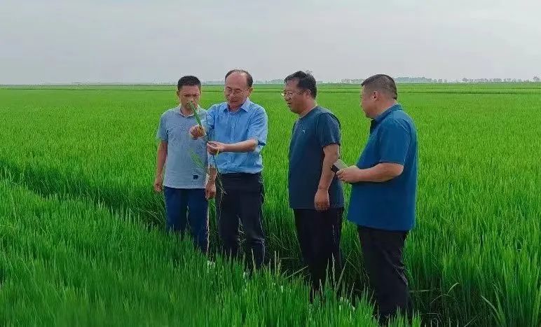 李红宇同乡镇干部田间踏查水稻长势
