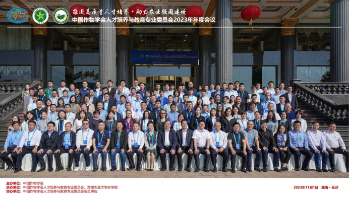 本次会议,由中国作物学会主办,中国作物学会人才培养与教育专业委员会、湖南农业大学农学院承办,各理事单位协办,来自全国近50所高校的涉农学院领导及师生代表2000余人参加了大会。会议以“推进高质量人才培养,助力农业强国建设”为主题,聚焦和研讨以高质量党建引领高质量发展,助力全国农学院在思想建设、学科建设、科学研究、人才培养、社会服务、创新创业等方面协同发展,切实推进“双一流”背景下的全国作物学学科建设。会议进行了2022年联合实践行动表彰,审议了2023年年会议程、讨论2024年专委会重点工作、确定了2024年专委会主题会、论坛、理事会、年会承办单位等。