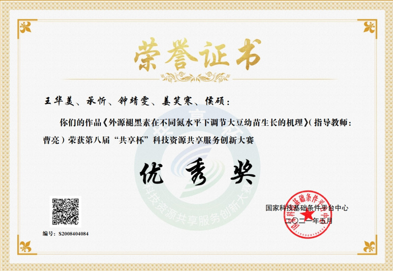 第八届“共享杯”科技资源共享服务创新大赛优秀奖