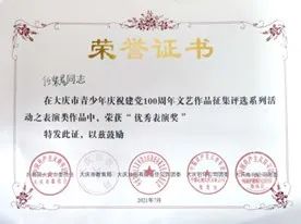 在参加大庆市青少年庆祝建党100周年文艺作品征集评选系列活动中,荣获“优秀表演奖”。在校疫情期间,曾多次参加疫苗接种及核酸检测等志愿活动,在本科期间积极参与本校研究生课题组的实习实践工作,在安达农业科技园的参观与实践工作,深化了自己知农爱农的价值塑造与情怀价值。 在参与大创项目可行性分析与经济效益评价课程中取得优秀成绩,与团队参加“互联网+”大赛获得银奖。