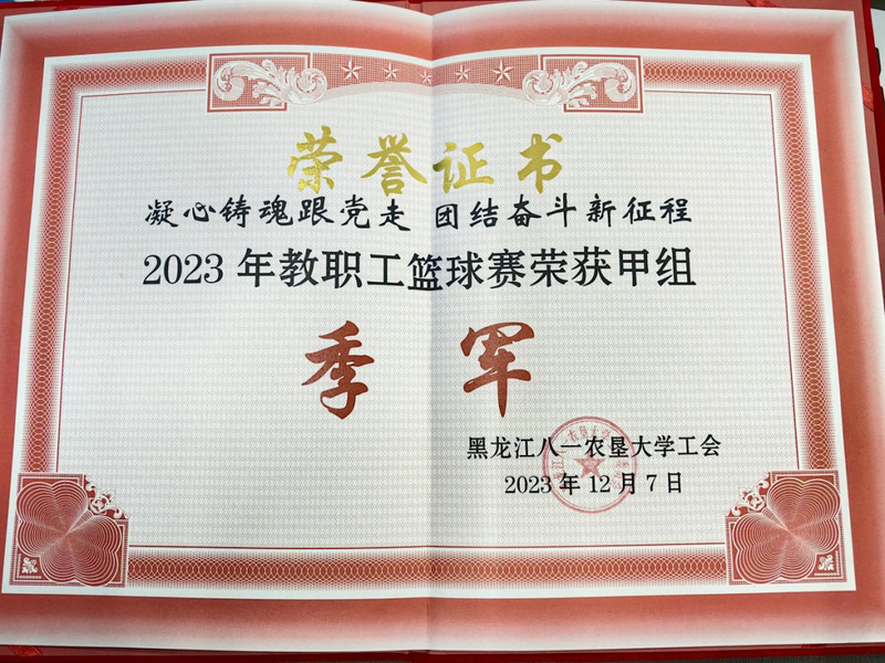 11月28日-12月8日,买球赛的app官网与应用科技学院联合组建“农学-应用联队”参加“凝心铸魂跟党走,团结奋斗新征程”2023年教职工篮球赛,并荣获甲组季军。