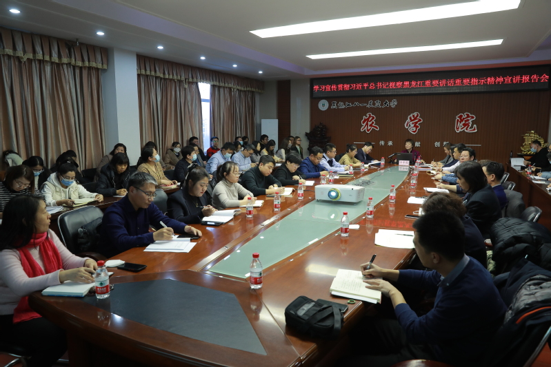 1129日下午,习近平总书记视察黑龙江期间重要讲话重要指示精神宣讲会在农学院4001会议室召开,校长李翠霞为农学院师生宣讲习近平总书记视察黑龙江期间重要讲话重要指示精神。郭永霞院长主持宣讲会,农学院师生和人事处工作人员参加。