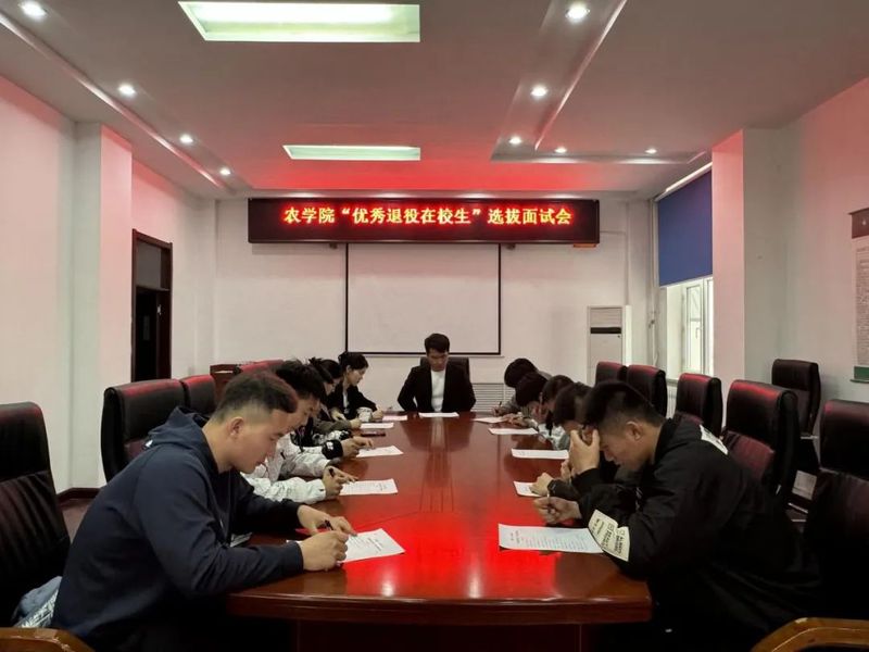 之后开展了农学院“优秀退役在校生”选拔面试会,各参加评选的退役在校生介绍了自己的基本情况、在部队受表彰情况等。形成书面材料后提交至学院,由学院统一考核并推荐至学校。