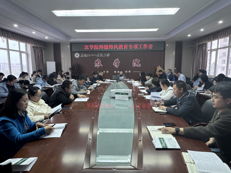 为进一步压实高校师德师风建设主体责任,推进师德师风建设任务落到实处,5月11日,学院于农学院4001会议室召开师德师风教育专项工作会。党委副书记王洋主持,全体教职工参会。