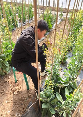 宋鑫垚:本次实习主要从事白菜自交授粉,白菜从最初的准备工作到授粉过程的细致操作,每一步都需要精心策划和严格执行。这次实践不仅让我对自交授粉的原理有了更深刻的理解,还让我感受到了农业科研人员的辛勤与付出。同时,我也认识到了理论知识与实践操作的结合的重要性。这次实验让我更加珍惜食物,对农业生产有了更多的敬畏与尊重。在未来的学习和工作中,我将更加努力地学习和实践,为农业的发展贡献自己的力量。