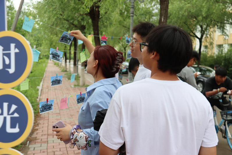 随着活动的推进,现场转至“分葉”环节,通过展示同学们日常生活、参与社团活动、科技创新、各类竞赛的照片墙,映射出大学生活的丰富多彩与个人能力的不断拓展,从课堂到社团,从图书馆到操场,那些共同度过的日夜再次鲜活起来。正如绿叶在阳光雨露的滋养下逐渐繁茂,这一时期,学生们也在学习与探索中不断“分葉”,各自绽放。