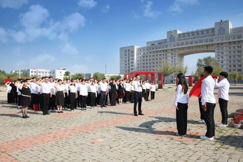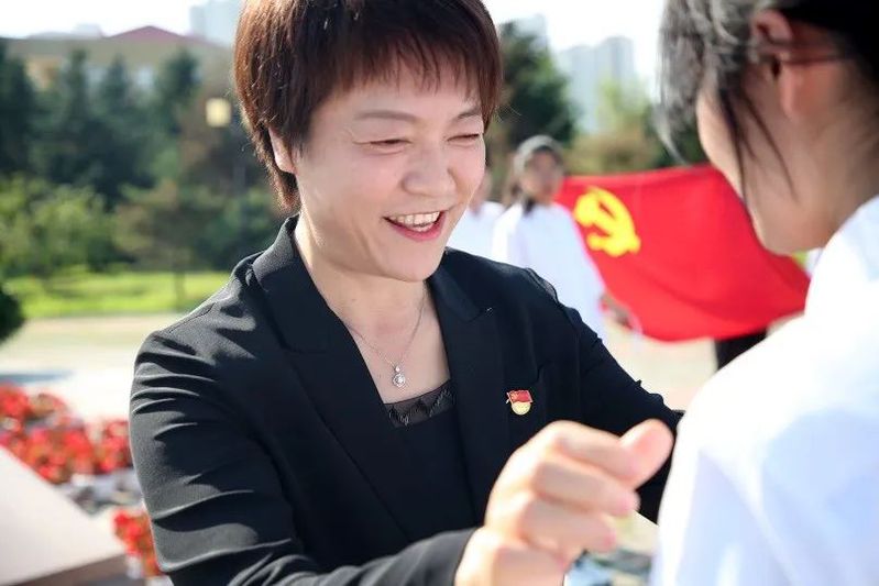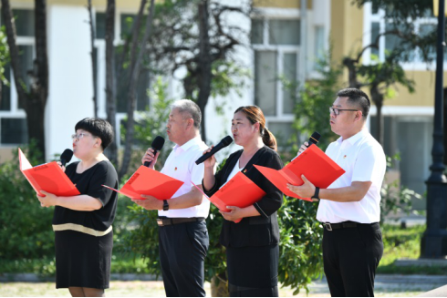 活动伊始,李翠霞校长、学院领导班子和各支部书记为新党员佩戴党徽。新党员进行入党宣誓,所有师生党员重温入党誓词,学院党委书记姜楠领誓。