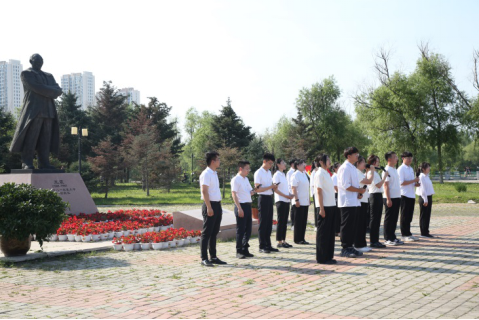 跟随着学院党委书记姜楠的讲解,大家看着面前的雕像,王震将军环抱手臂,迎风而立,展露笑颜。这是将军50岁时的样子。那一年,他率10万转业官兵开发建设北大荒;那一年,他亲任校长创立了与黑龙江农垦事业血脉相连的黑龙江八一农垦大学。