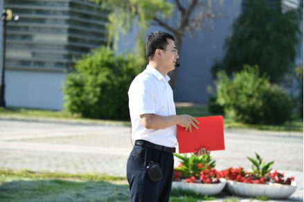 八一广场校训石前,党委副书记、纪委书记王洋讲授《困知勉行厚积淀 知纪守纪方成器》微党课