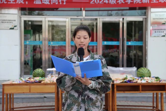 来自强基班的王嘉欣和智农班的张绍锟两位同学还对14天来军训的感受和在八一农大这半个月的学习生活进行了精彩分享。活动还设置了互动游戏,让原本陌生的面孔在轻松愉快的氛围中逐渐熟悉起来,同学们积极参与其中,不仅增进了相互之间的了解和友谊,也感受到了农学院大家庭的温暖与和谐,现场气氛热烈而温馨,充满了欢声笑语。