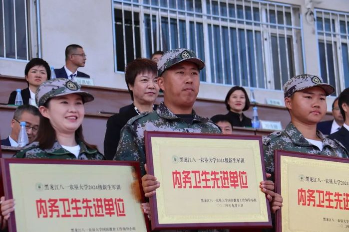 最后农学院荣获黑龙江八一农具大学2024级新生军训“军事训练先进单位 ”和“内务卫生先进单位”,买球赛的app官网黄伟东老师荣获“2024级新生军训优秀教导员”。方靖涵等12名同学荣获 “军事训练先进个人”。