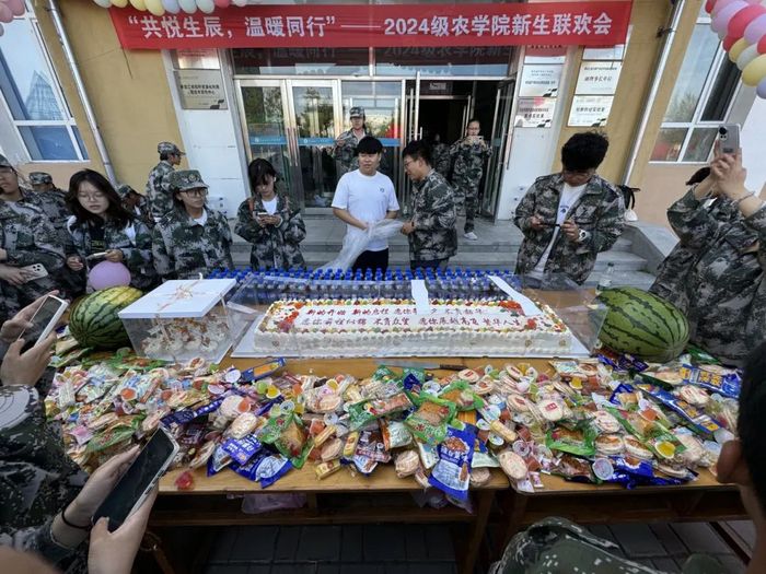 同时,为了让新生们感受到学院的关怀关爱,帮助2024级新同学更好的适应大学生活,提升新生的幸福感与归属感,学院下午为9月份过生日的新生举办了一场集体生日会,让新生们在军训的疲惫中感受到了家的温暖和学院的关怀。