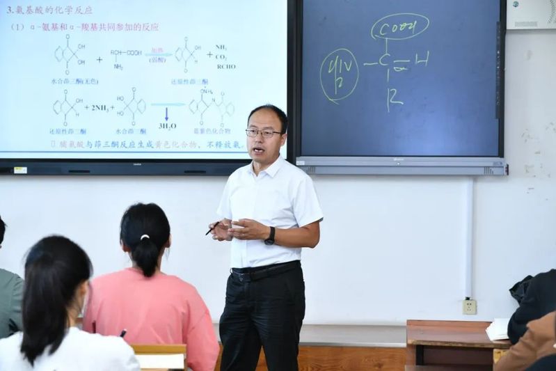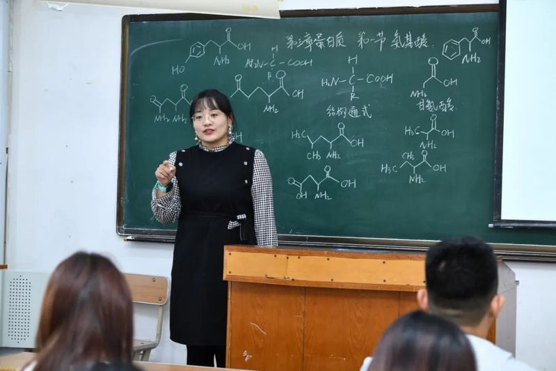 张海洋:每次走进《生物化学》课堂都拥有一次与学生们共同成长的机会,一起感受生物体内化学变化的奇妙规律。我将拥抱和呵护每一位学生的求知欲,不辜负讲台下闪闪发亮的目光,用爱与责任编织我的教育梦,学生们的中国梦,我们的强国梦。