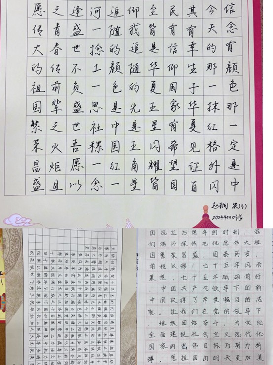 七十五载国庆路,锦绣中华铸辉煌,实践出真知,壮美山河品风采。国庆节活动不仅激发了同学们深沉而热烈的情感,更是抒发了对祖国的热爱和对民族未来,也更加明白了作为新时代的青年,肩上承载的使命与责任。祖国的繁荣,源于我们的付出与坚守。
