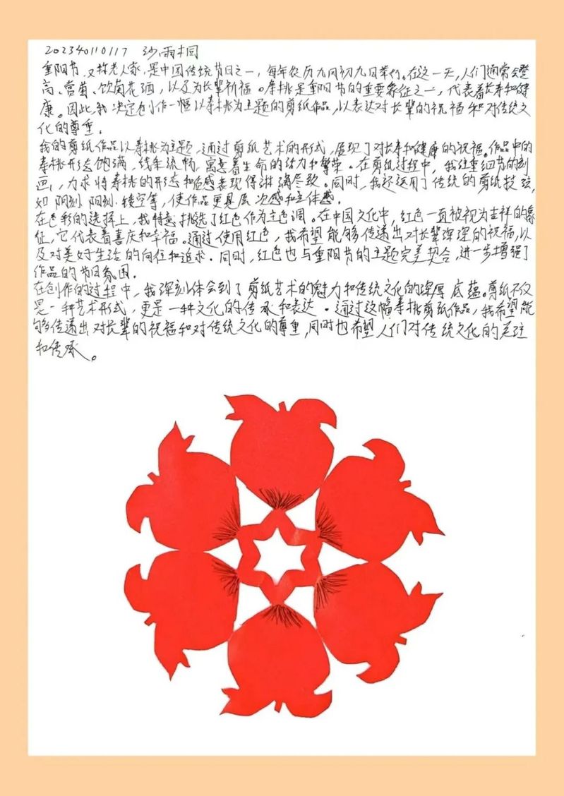 同学们踊跃参与拿起剪刀和彩纸,创作出一幅幅寓意深刻、富有创意的剪纸作品。这些作品不仅展现了同学们精湛的剪纸技艺,更蕴含了他们对长辈的深情厚意和美好祝愿。