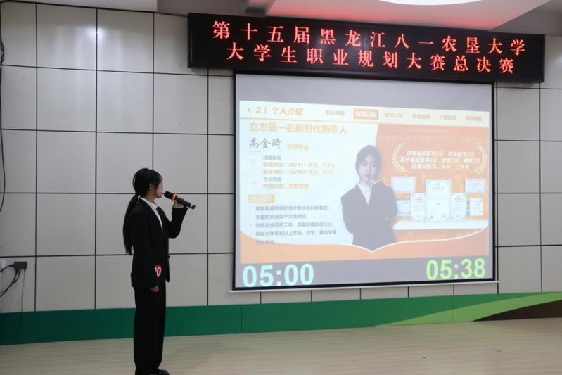 在比赛过程中,两位同学依次登台,通过精美的PPT演示和充满激情的演讲,全面展示了自己的职业规划。他们结合自己的专业背景、目标职业及所属行业,从职业缘起、自我评估和期望、现有成果和优势、未来计划和挑战等方面进行了深入剖析,所展示的职业规划方案不仅彰显了他们对未来职业的热忱与向往,还体现了对自我成长的深刻思考。面对评委的提问,他们从容不迫,展现了深厚的专业功底和对职业规划的独到见解,最终凭借出色的表现赢得了评委们的高度评价。