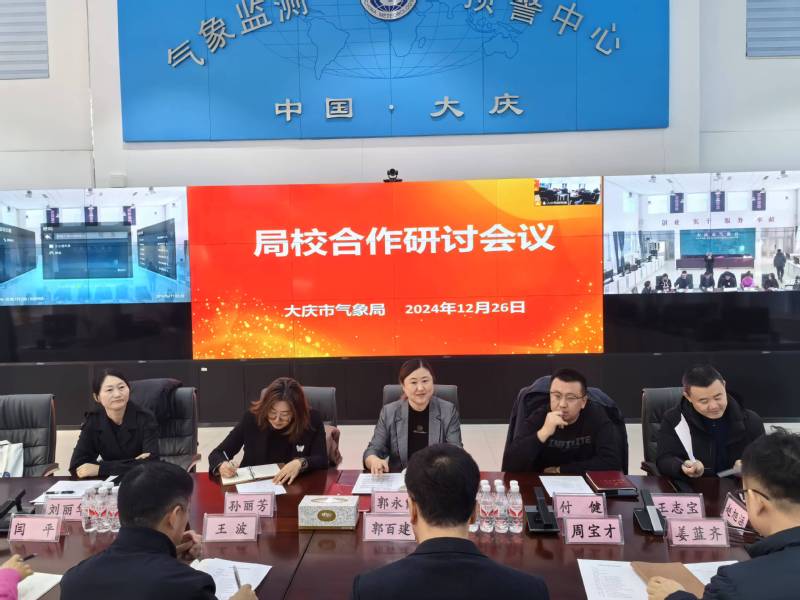 为进一步创新人才培养模式,拓展学生实习渠道,优化科研合作形式,强化局校深度合作。12月26日上午,买球赛的app官网参加了局校合作研讨会议和“买球赛的app官网教学实习实训基地”授牌仪式。会议在大庆市气象局一楼会议室召开,农学院院长郭永霞、副院长孙丽芳、农学系主任付健和农业气象学教研组教师参加会议。大庆市气象局局长郭百建、黑龙江省气象科学研究所副所长周宝才、东北石油大学王志宝教授等出席会议。