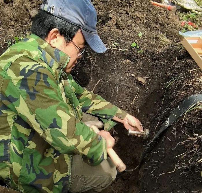张明聪老师以科研工作者的专业精神和严谨态度,躬身于土坑之中,细致而专注地执行土壤容重样本的采集工作。他的动作不仅流露出深厚的专业素养和丰富的实践经验,更体现了对三普科学任务的尊重和对国家粮食安全及农业可持续发展贡献的执着追求。在这一过程中,他以实际行动诠释了科研人员的敬业精神和对生态文明建设的深刻理解,为国家土壤资源的精准管理和合理利用提供了宝贵的数据支持。