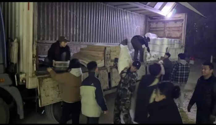 在完成了艰巨的装车工作之后,众人纷纷登上那辆九米长的货车,欢声笑语中,共同留下了难忘的合影瞬间。