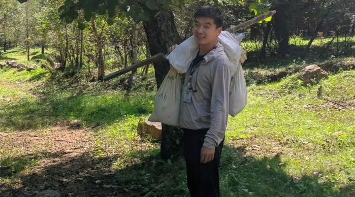 每袋土样重达八公斤,我们互相鼓励,扛着土样一起向前迈进,我们的每一步都坚定而有力,每一次前进都承载着对国家粮食安全和农业可持续发展的深切关怀,共同承担着这份沉甸甸的科学使命。在这片土地上,我们的汗水和努力凝结成了对国家未来的坚定承诺。