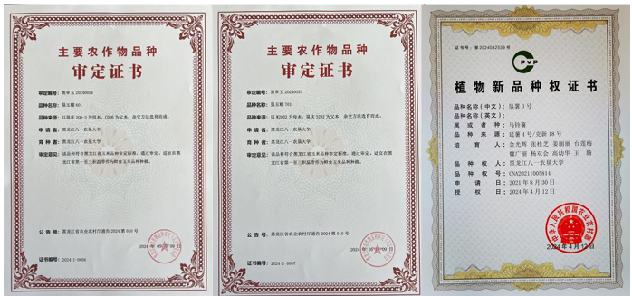 2024年,学院审定“垦玉糯601”“垦玉糯701”2个鲜食玉米品种,获“垦薯3号”马铃薯得植物新品种权。