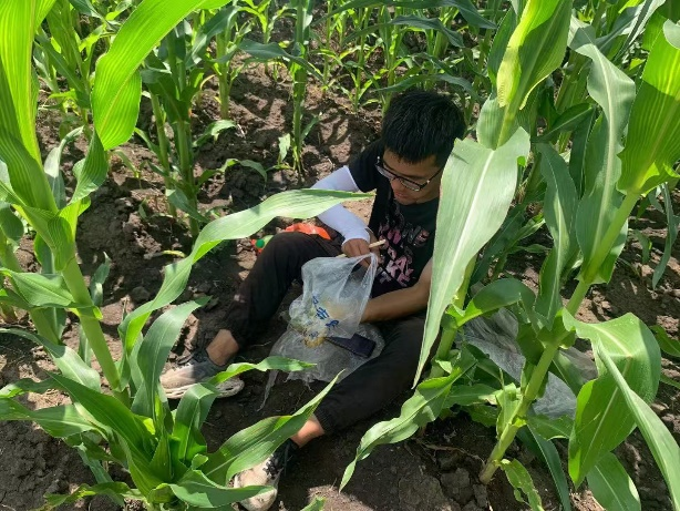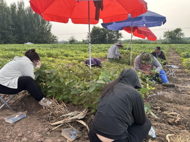随着夏日的到来,进入了炎热的季节。科技小院的年轻人们,顶着烈日,穿梭在郁郁葱葱的大豆田间。他们手持采样工具,细心地收集着每一份珍贵的植株和样本土壤,每一次样本收集,都是对大豆生长规律的深入探究。