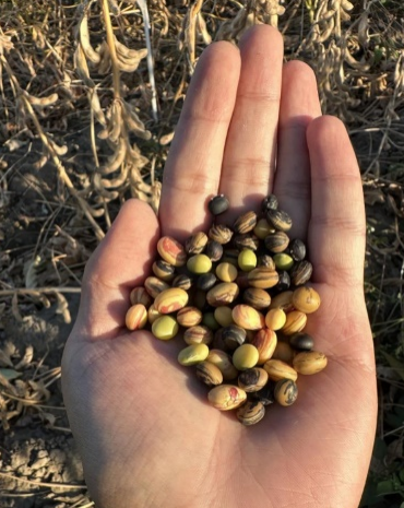 九月,在田间进行大豆熟期调查,摘一个豆荚尝一粒豆,多余的就放在口袋,走了一圈下来发现口袋里的豆子竟然是五彩斑斓的。当然了,秋天这幅五彩斑斓的画,肯定少不了我们学农研究生的一笔。
