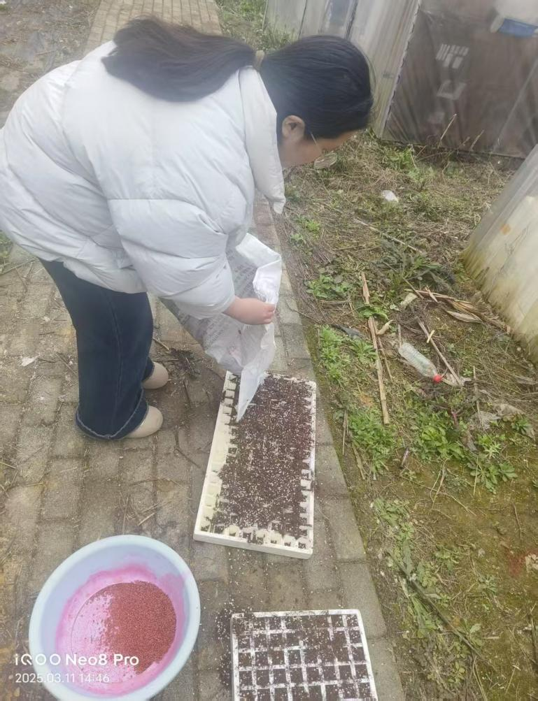 杨应艳:在实习期间,我主要负责螺旋藻液发芽试验和废水浓缩液发芽试验两个试验。并且在试验进行期间的数据测量和记录,有时还帮助学长学姐测量发芽数据以及进入大棚进行播种。我始终保持着高度的热情与专注,深入了解生产环节,虚心向经验丰富的前辈请教,认真学习每一个操作细节。面对复杂的实验流程和严格的质量要求,以积极的态度去钻研、去探索。从最初对工作的生疏,到逐渐熟练掌握各项技能,在实践中不断积累经验,提升自己的专业能力。同时,我还在实习中深刻体会到,理论与实践之间的结合并非易事。实习让我对专业知识有了更深刻的理解,也培养了解决实际问题的能力。