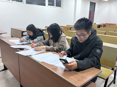同学们提前了解并学习了世界文化知识,为这次考试做出了充足的准备。活动开始后,大家自觉的上交了自己的手机,有序落座,信心十足的等待着考试的开始。试卷下发后,在紧锣密鼓的考试氛围中,同学们奋笔疾书,专心作答,严守考场纪律。