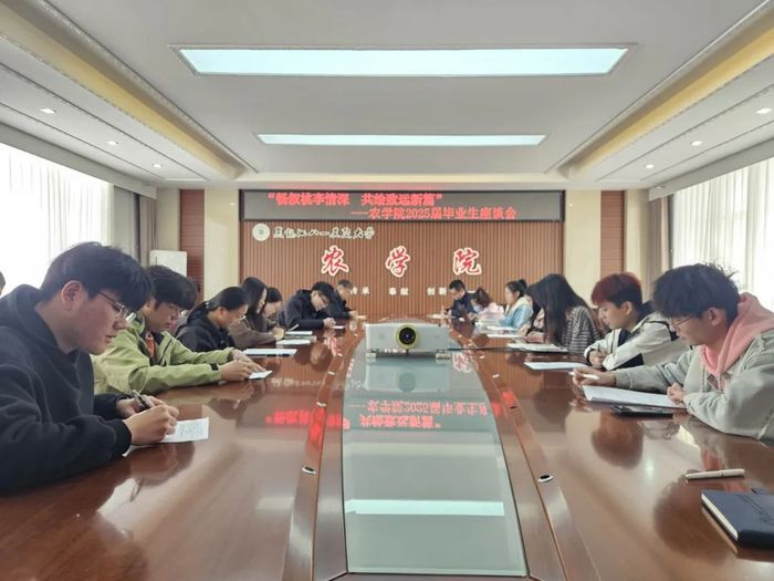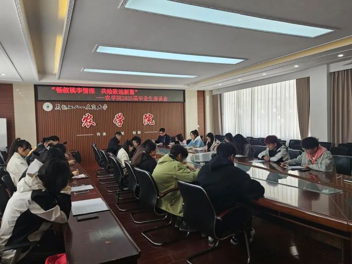 为全面了解毕业生诉求,持续优化育人环境、强化服务保障效能,切实推进学院高质量发展进程,农学院于4月29日上午在4001会议室组织召开“畅叙桃李情深共绘致远新篇-2025届毕业生座谈会”。学院党委副书记王洋、教学督导姜述君教授、班主任代表、毕业年级辅导员及本硕博各层次20余名毕业生代表出席会议,围绕教育教学管理、学习生活保障、职业发展规划及后勤服务体系等核心议题展开深度研讨。