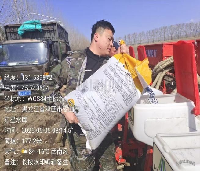 (4)实习期间,我在二十六连队的田间观察、参与和学习了大豆种子的播种工作。855播种的主要大豆品种为垦农34,在专业农技人员的悉心指导下,我系统掌握了此次播种工作中的关键要点:不仅了解了所用化肥的具体类型和特性,明确了适宜本地土壤和气候条件的大豆种子品种,还通过实地操作,精准把握了合理的种距、播种深度等技术参数。并且我亲身参与了大豆种子和化肥的搬运、添加工作了,体会实际劳动。在播种工作中,主要工作是协助农民为播种机添加种子和化肥,整理化肥袋和种子袋,依旧在播种机播种后覆土踩实。