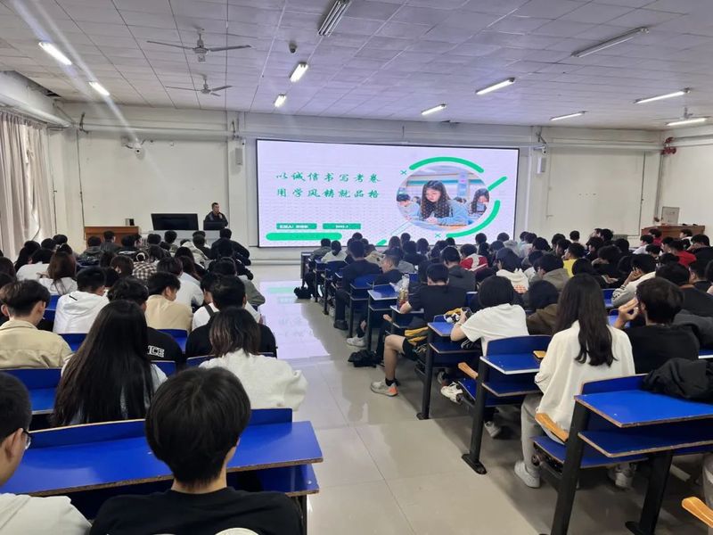靶向施策:直面学风痛点,构建全链条教育体系。针对“旷考人次居高不下”“补考率高”等现状,学院以问题为导向,打出“教育+制度+帮扶”组合拳:通过主题班会、诚信承诺书签署、典型案例警示教育(如四六级作弊开除学籍案例)等形式,剖析作弊行为在道德、学术及法律层面的严重后果(如诚信档案污点、刑事责任风险),覆盖全院学生超95%。