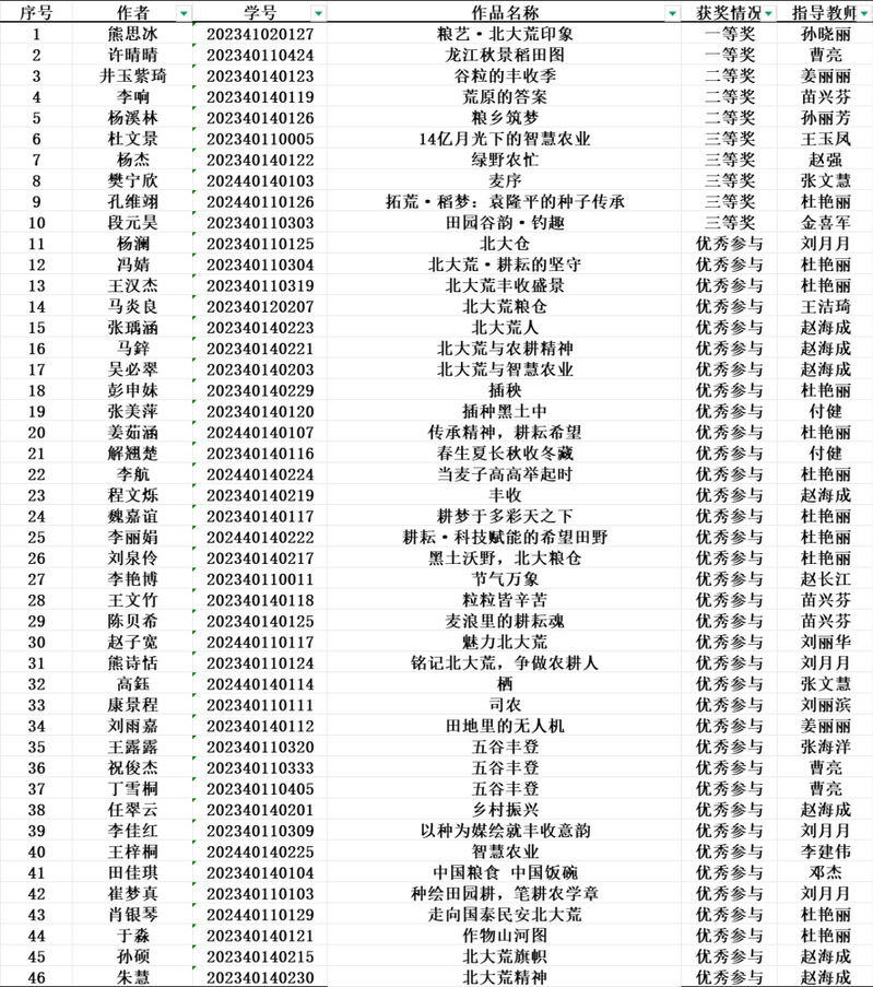 经评审,最终评选出一等奖2名、二等奖3名、三等奖5名及优秀奖若干名。此次大赛不仅为学生们提供了展示才华的舞台,激发了学生对农业科技的兴趣,深化了对种业知识的理解,更培养了学生“知农爱农、强农兴农”的使命担当;进一步推动了学校“以赛促学、以学促用”良好氛围的形成,为农业强国建设贡献力量。