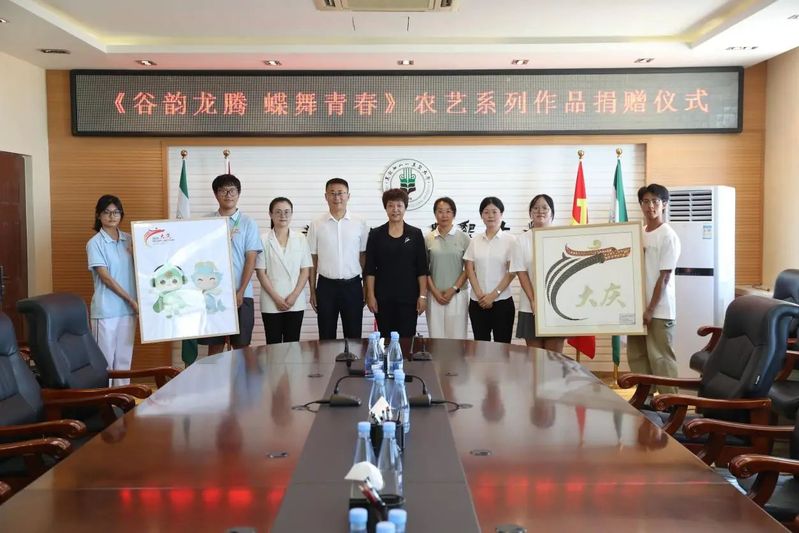 创作过程中,队员们不仅锤炼了实践动手能力与艺术创新素养,更将对运动健儿的敬仰、对体育精神的感悟熔铸于作品之中,尽显新时代青年昂扬向上的精神风貌,为省学生运动会增添了一抹独特的青春亮色。7 月 28 日,《谷韵龙腾 蝶舞青春》农艺系列作品捐赠仪式如期举行,系列佳作获院校领导高度肯定,成为买球赛的app官网向学运盛会献上的一份饱含心意的青春贺礼,彰显了校园文化与体育盛会的深度交融。