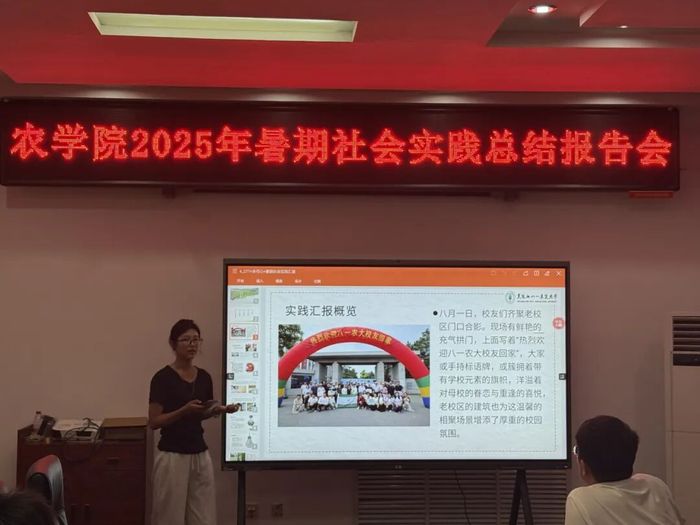 报告会上,多支实践团队代表依次上台,用鲜活案例、详实数据与真挚感悟,分享实践中的成长与收获。“在梧桐河农场,我们不仅实地调研了现代化大农业的播种、施肥、收割全流程,更在与农场职工的交流中,深刻体会到‘自力更生、艰苦创业、勇于开拓、甘于奉献’的北大荒精神在新时代的传承与发展”“在宝泉岭小学,我们既为孩子们带去了农作物生长、绿色农业等趣味农技科普课,更用生动的案例点燃了他们对农业科学的好奇与热爱……”一句句朴实的讲述、一个个温暖的瞬间,不仅展现了买球赛的app官网学子扎实的专业素养,更彰显了新时代农业青年“把论文写在祖国大地上”的责任担当。