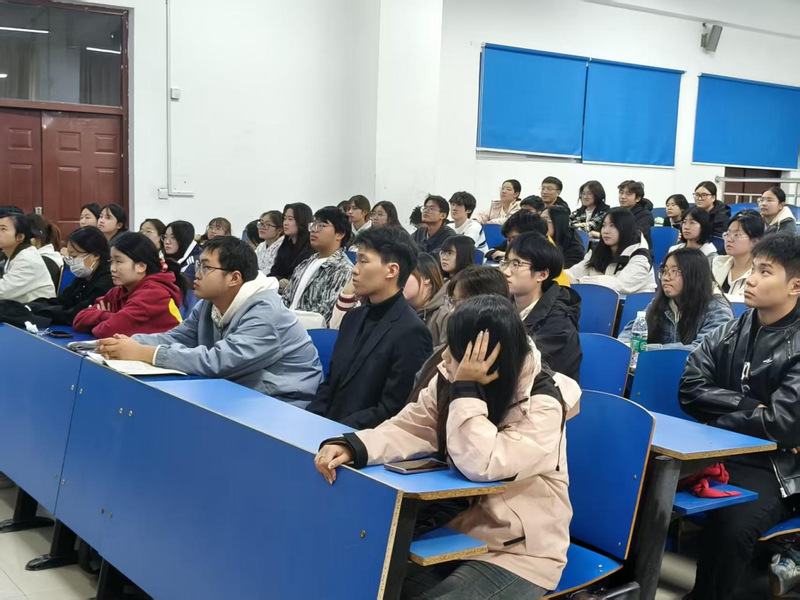 在经验交流环节,李明熹同学向同学们详细阐述了参与大创项目的优势与重要性,重点剖析了本科生参赛的独特优势及成长价值,鼓励同学们以赛促学、以赛赋能。他生动形象的讲解,让同学们对大创项目有了更深入的认知。